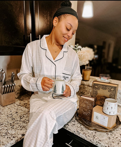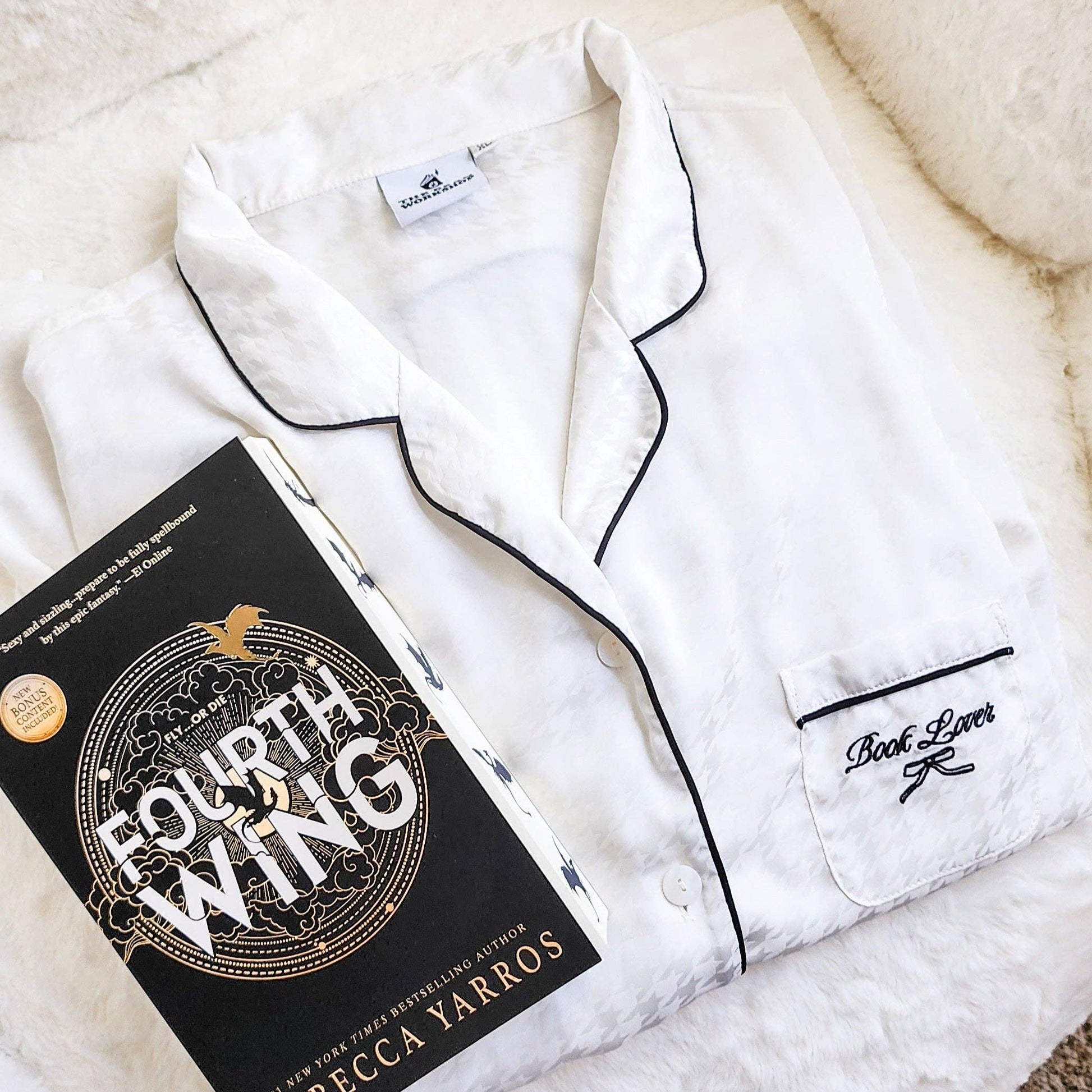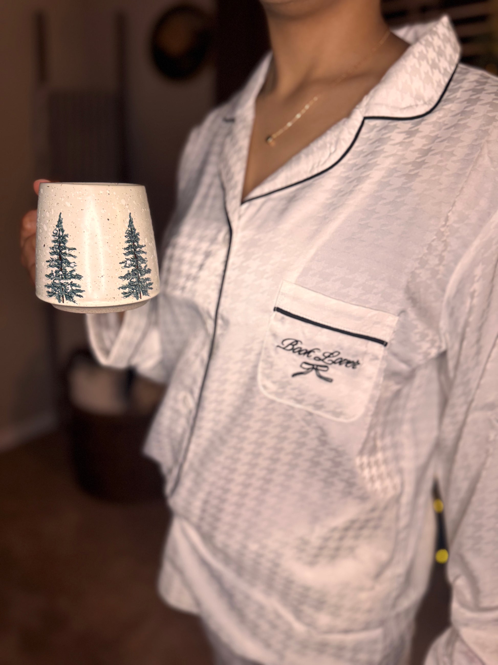Slip into cozy charm with the Book Lover Satin Houndstooth Pajama Set. Crafted from silky soft satin, this relaxed-fit lounge set features a classic button-down top and long pants, perfect for curling up with your favorite book. The timeless houndstooth pattern adds a playful touch to your reading time comfort.