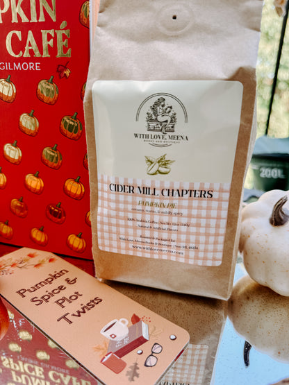 The taste of fall, brewed into every cup. Cider Mill Chapters is a creamy pumpkin pie blend, warm and mildly spiced, that feels like a golden October afternoon spent wandering through an orchard or curling up with your favorite autumn read.