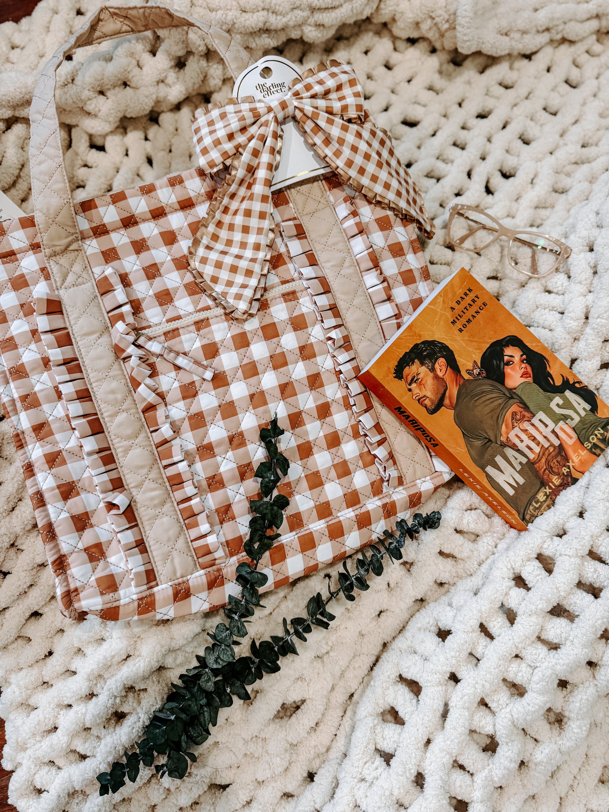Carry a touch of cottagecore charm wherever you go with the Maple Meadow Gingham Tote. Featuring a warm maple-tan and cream gingham pattern, this quilted bag blends cozy nostalgia with everyday practicality. The roomy interior, soft quilting, and sturdy straps make it perfect for library hauls, market mornings, or travel days. Thoughtful details like a secure zipper closure, wipeable lining, and pass-through trolley sleeve make this tote as functional as it is whimsical — a cozy essential you’ll reach for again and again.