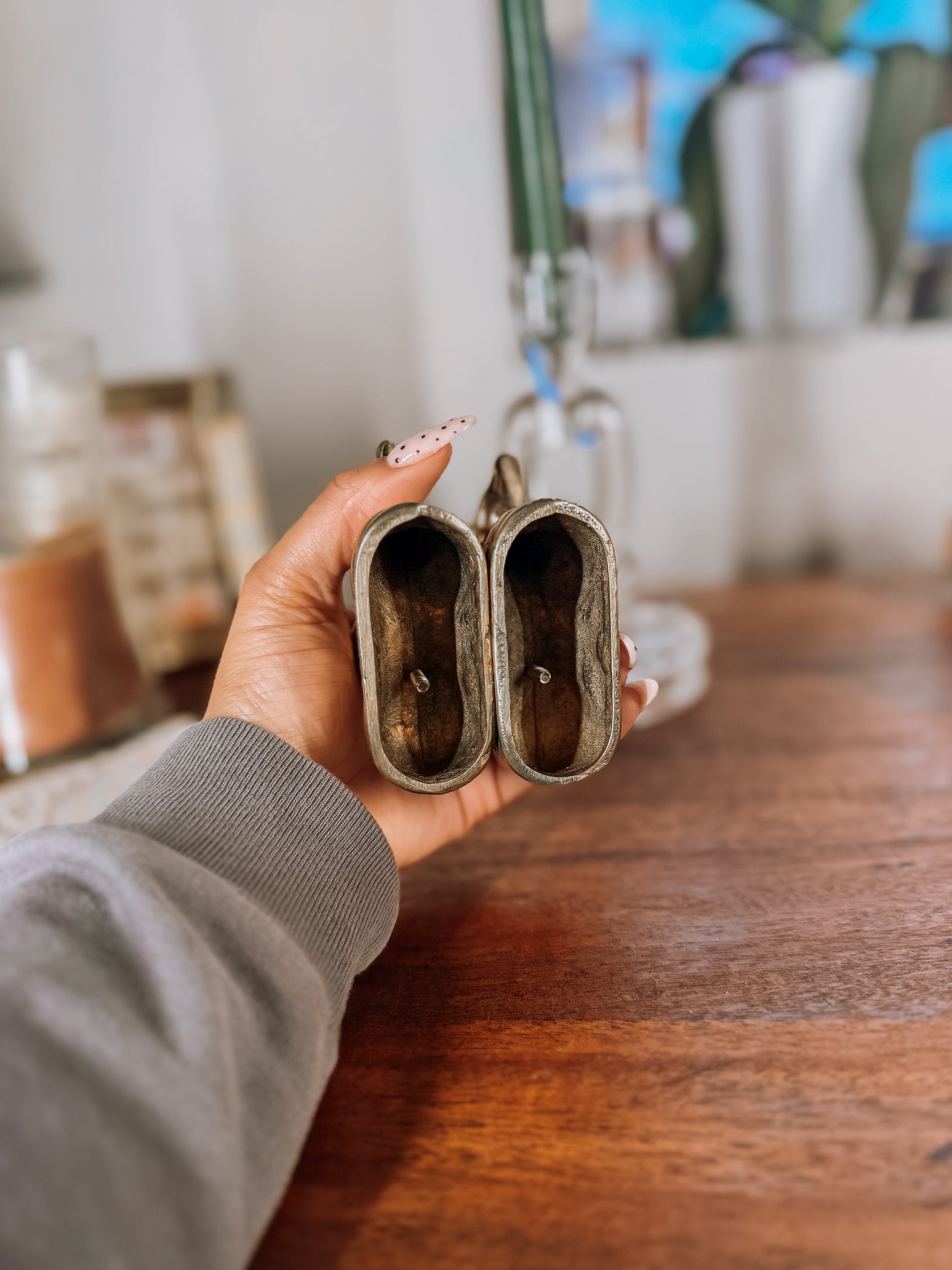 A charming brass pair from Christmases long ago, these vintage reindeer taper holders bring instant storybook magic to your holiday cottage décor. Each deer features beautifully aged brass, sweet sculpted detailing, and a sturdy taper well sized for standard candles. Style them on your mantel, dining table, or tucked into a cozy vignette with greenery for that warm nostalgic glow.