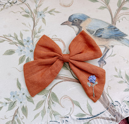 Crafted from breathable linen and secured with a sturdy alligator clip, these bows are perfect for everyday wear or as a dreamy finishing touch to your cottagecore looks. Thoughtful details and subtle floral embroidery make each piece feel special, timeless, and effortlessly cozy.