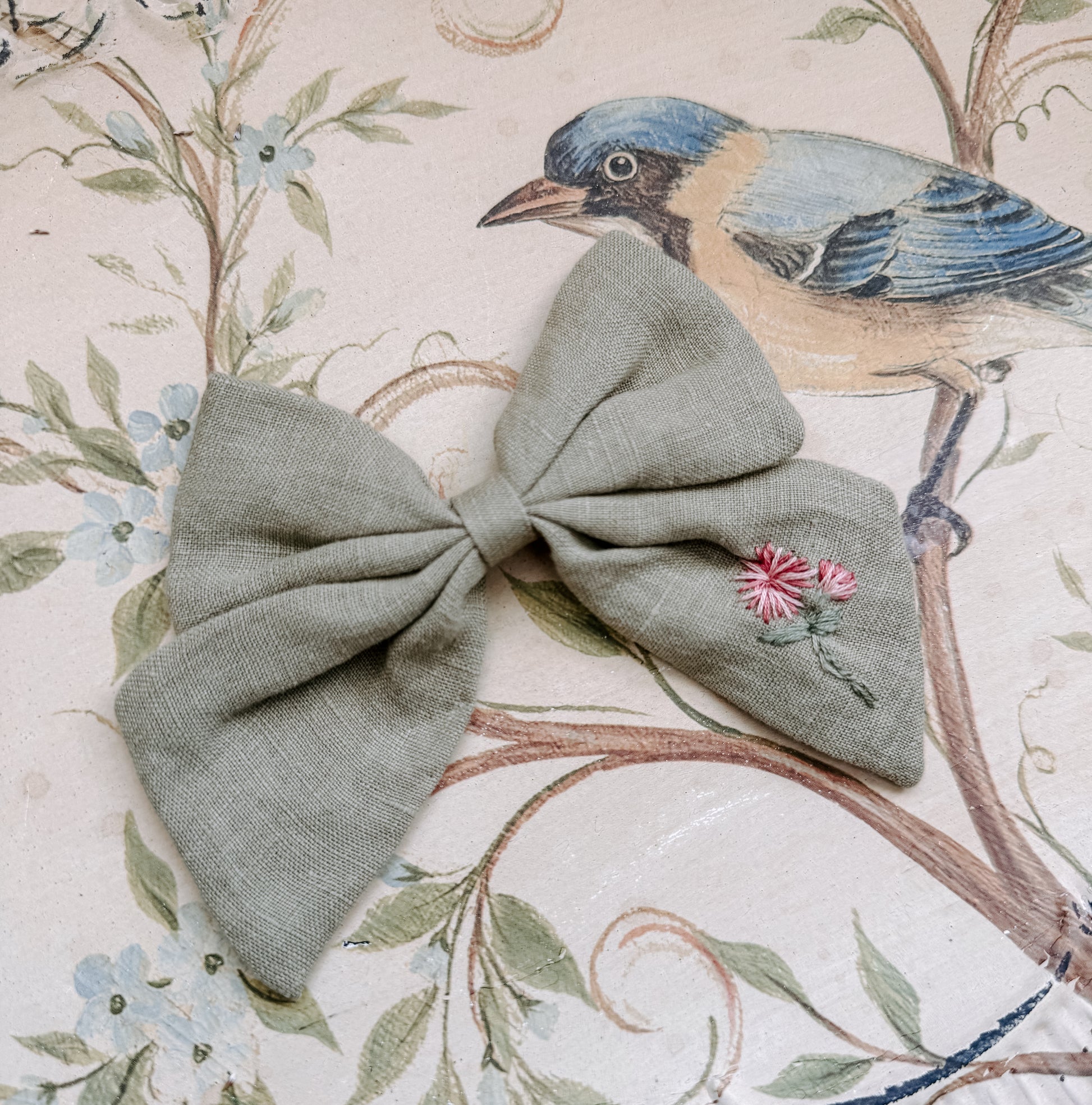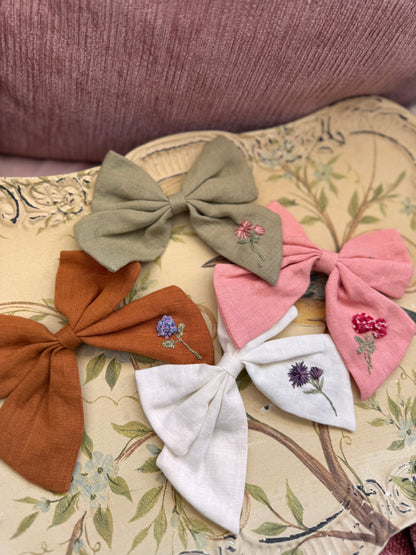 Bring a soft, romantic touch to your hairstyle with our Woodland Whimsy Linen Bows – Floral Edition. Each bow is hand-embroidered with delicate wildflowers, adding a gentle, storybook charm inspired by quiet gardens and slow living.